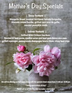 Easter Sunday Prix Fixe Menu Salad and Fruit Course Organic baby arugula, agave nectar glazed pecans, Crows dairy chevre goat cheese, candy-striped beets, AZ sun-dried cherries, blood orange vinaigrette - Seasonal Arizona fresh fruit with wild orchids and local prickly pear crème fraiche Choice of Entree Fess Parker Winery grilled lamb chops, meyer lemon gremoulata, roasted az parsnip potato puree, agave glazed local heirloom carrots, pomegranate demi-glace - Fresh-baked quiche with brocollini. aged cheddar, caramelized onions, and potato Served…